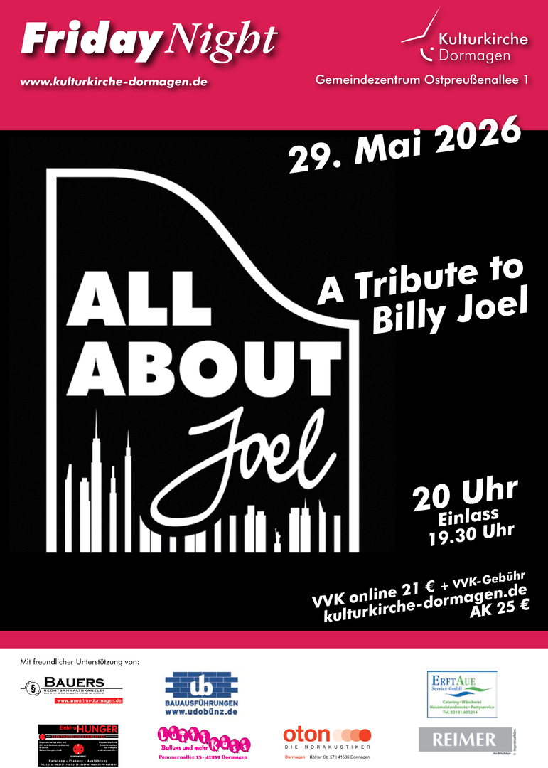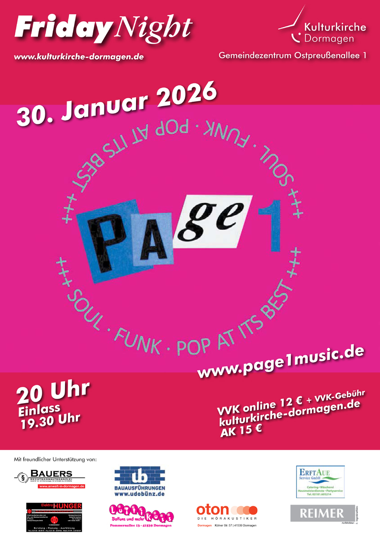 Seit August 2012 gibt es nun die Friday Night Konzerte im Rahmen der Kulturkirche Dormagen.